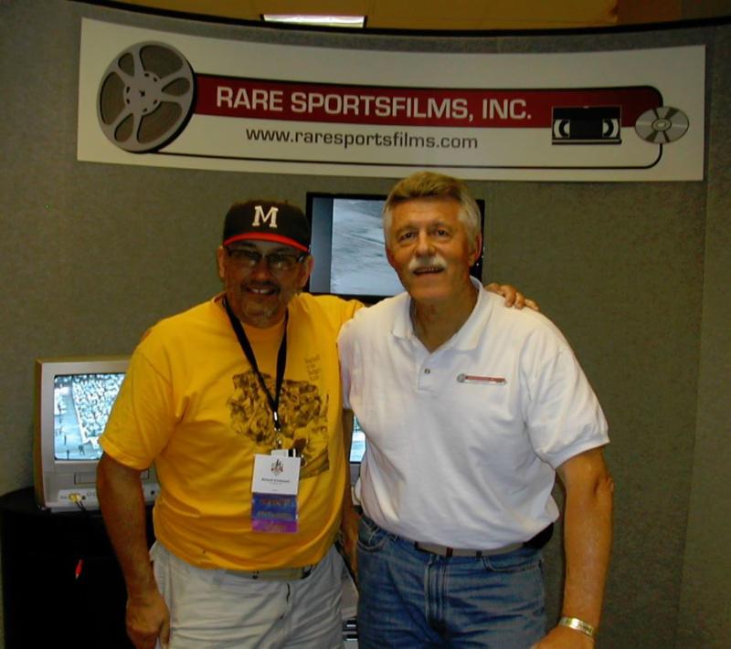 Visit with Rare Sportsfilms in Chicago at the "National Sports Collector's Convention" Rare Sportsfilms has been exhibiting its video productions at the National Sports Collectors Convention for more than a quarter of a century! Find us at booth #426 of the Convention, July 29 thru Aug. 2 at the Rosemont Convention Center near O'Hare Airport, Chicago. Click this link to get more info about the show, including show hours, professional athletes who will be signing autographs, etc. Rare Sportsfilms president Doak Ewing says, "Any sports fan who appreciates the history of sports or collects artifacts related to the history of sports should not miss attending "The National" and seeing the greatest assemblage of sports memorabilia in the world under one roof - almost all of it for sale! In addition to athletes signing autographs, you'll find old baseball cards (one of MY favorite collectibles), vintage photos, old magazines, books, ticket stubs, game equipment, framed memorabilia, old game-worn uniforms, team yearbooks and more! I'm looking forward to displaying our DVDs and seeing old friends and new collectors alike at booth 426 all week! At this show you will meet the most knowledgeable dealers and sports collectors in the country! SEE YOU IN CHICAGO in 3 weeks - (the last week in July)! - Buy three or more DVDs when you visit our booth (# 426) and receive a special show discount! Visit Rare Sportsfilms on the web to see a full listing of our collection of baseball, football, basketball, golf and auto racing DVDs! |