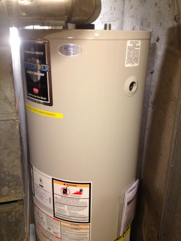 Customers Chuck and Cheryl H. from Carmel heeded my warning and replaced their 11 year old water heater recently. If they had waited, a new 50 gallon gas water heater would not have fit into the opening between the furnace and wall.