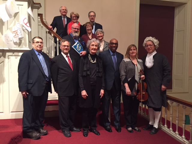 November 7-8, 2015  - "Mayflower to Marathon: 400 Years of Boston-based Psalms, Hymns & Patriotic Songs"  Held on Saturday at Old West Church, UMC in downtown Boston and on Sunday afternoon at Christ Church Andover, MA.  Jointly sponsored by The Hymn Society and the Boston AGO, HSUSC leaders were Cheryl Boots, R. Harrison Kelton, Kirk and Diane Hartung, Deborah Loftis, Daniel McKinley, Thomas L. Baynham, Jr., Edward J. Frazier, Jr., Joanne Reynolds, Carl P. Daw, Jr., FHS, and Carol Doran.  Boston AGO leaders included Robert Barney, Jane O'Keefe, and Peter Krasinski, Dean.  William Billings also attended!  The final hymn was a revision of Carl Daw's text, "When  Sudden Terror Tears Apart" which was reworked in 2013 to respond to the  Boston Marathon bombing.  Carol Doran  premiered a stunning new  tune for  the text, TIMELESS KYRIE, which can  be found at hopepublishing.com.