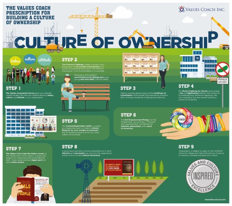 At Values Coach we help our clients foster a stronger culture of ownership. Over the years we have identified 7 essential steps (and 2 optional steps) in that process. This week, beginning with a special Spark Plug later today, I will describe that process.