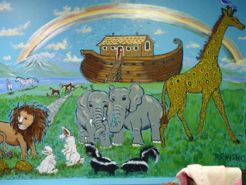 Elephants, a giraffe, rabbits, sheep and even skunks are on a Noah's ark mural, painted by Barbara Chisholm, in the nursery of St. Paul, Hampton. The mural was inspired by donations to a memorial fund in memory of Miles Edwards.