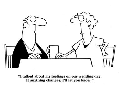 Emotions accompany thoughts. If you think your wife is lazy, you might feel disappointment, anger or frustration. If you think your husband is responsible, you might feel grateful, encouraged or happy.
