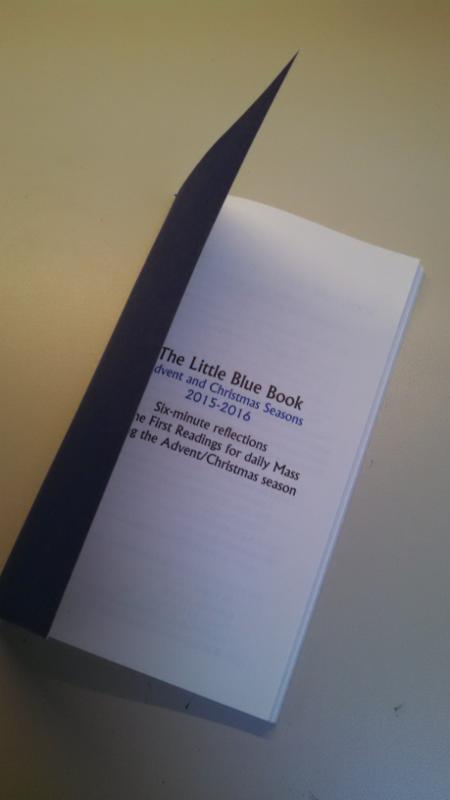 The Little Blue Book for Advent and Christmas 2015-2016 is available at the back of church and in the parish office. The book includes six-minute reflections on the first readings for daily Mass during the Advent/Christmas season.