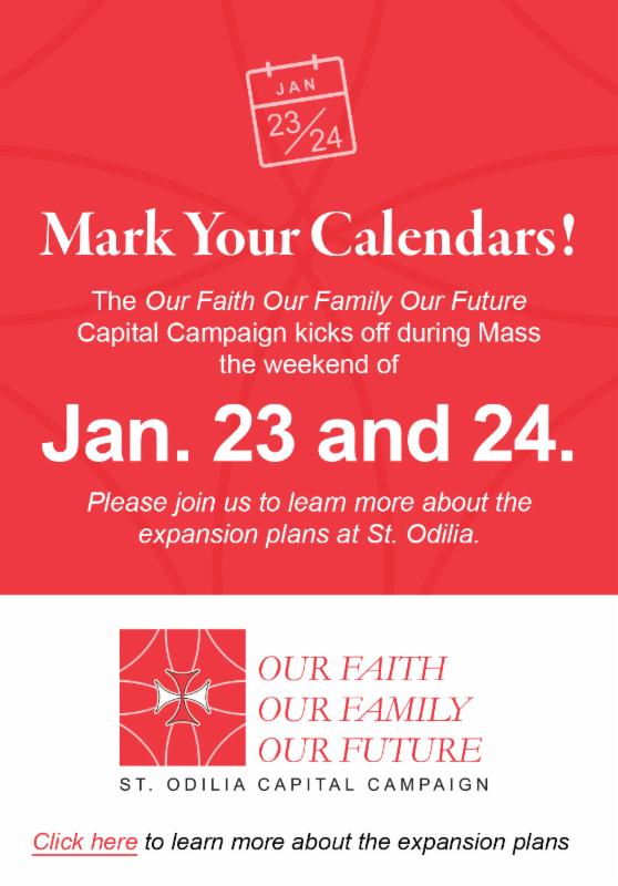 As we welcome the new year, there is much to look forward to at St. Odilia during the month of January!