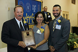 Featured from left to right, Distinguished Alumnus Tom Best, JAA President, Anissa Hernandez and Justin Muñoz, Director of Alumni