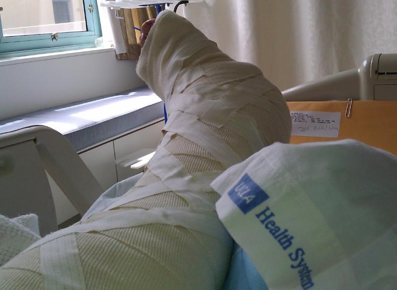 This is the day of my life changing ankle fusion surgery, July 20th, 2011. It's nothing close to my recent, I screwed up my knee from a fall running, but it accurately illustrates being laid up. Prior to my ankle fusion, I could barely walk, let alone run.