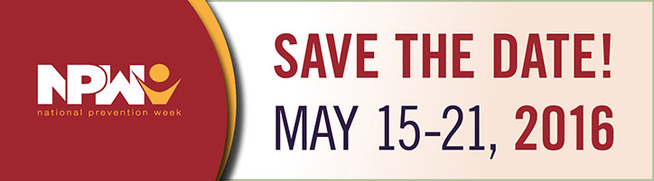 The overall theme for 2016 is "Strong As One. Stronger Together." Explore the National Prevention Week website to learn more about how you can get involved, from planning a community event to participating in the "I Choose" Project.