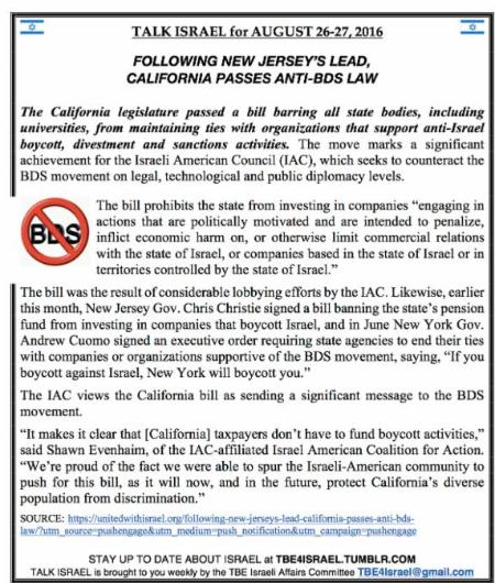Tues. Sept. 6 - TBE Israel Affairs Committee Meeting - 8:00 p.m.