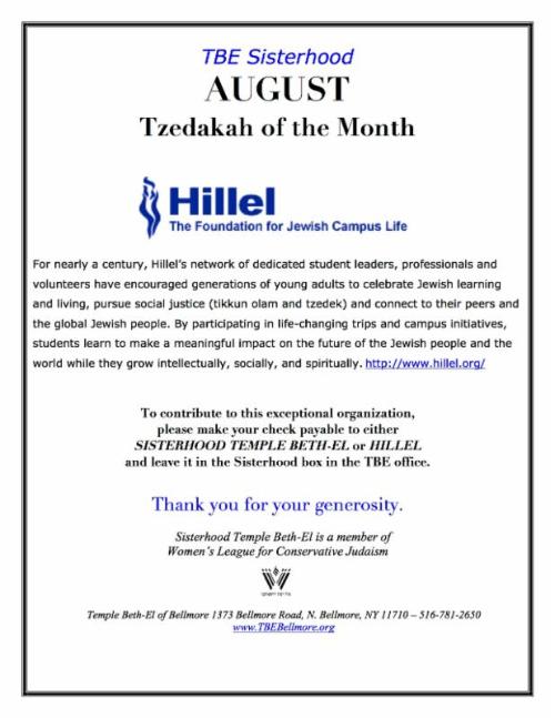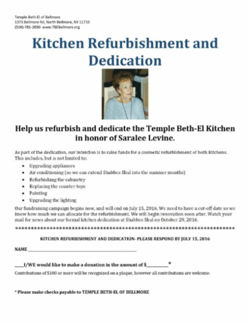 To become a sponsor of the week (you can request a specific week), please email ruthtbe@gmail.com or contact the TBE Office. Checks should be made out to "Temple Beth-El of Bellmore" with TBENewsletter in the memo. Tax receipts will be provided upon request.