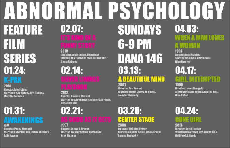 Dr. Sockol welcomes all to her PSY 231 feature film series | Sundays 6-9pm in Dana 146
