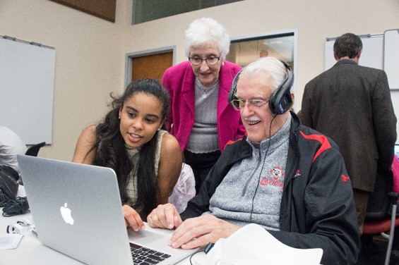 Alexis introducing her community partner, Peggy Evans Bill Giduz photo