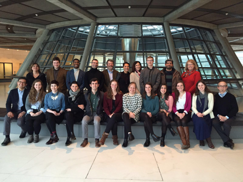 Dr. Multhaup is a faculty fellow for GER 433/HIS 433, The Holocaust and Representation. The seminar traveled to Berlin over spring break and visited many Holocaust memorials and monuments, libraries, Sachsenhausen concentration camp, museums, and policy centers. Evenings were small group discussions over dinner. Below is the group after visiting the Bundestag building and visiting Ekin Deligoz, an Alawite Turkish German parliament member who visited Armenia last year to lay a wreath as part of the 100th anniversary of the Armenian genocide. The trip was intense, enriching, and advanced Dr. Multhaup's work toward a multi-disciplinary cultural memory course.