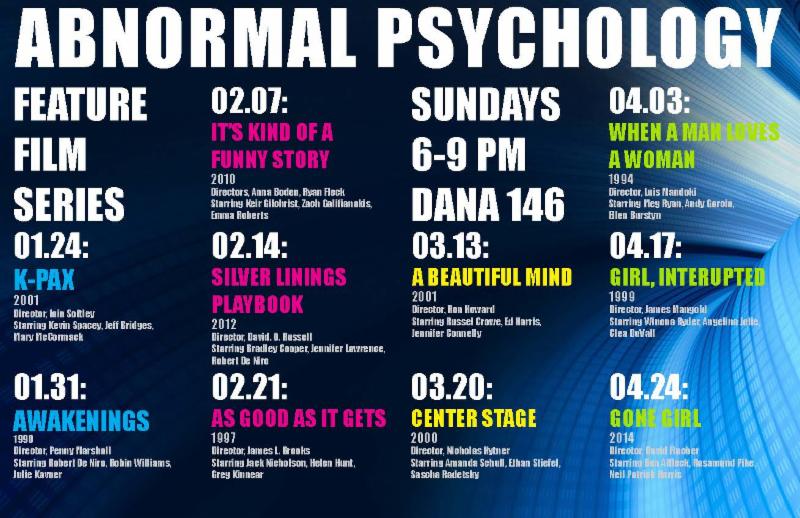 Dr. Sockol welcomes all to her PSY 231 feature film series | Sundays 6-9pm in Dana 146