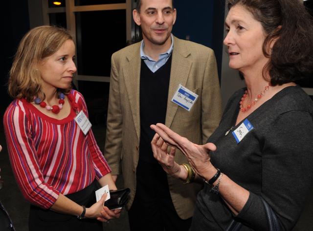New Bicycle Coalition head Sarah Stuart makes point with PB's Anna Lynn Smith and Peter Angelides of Econsult Solutions