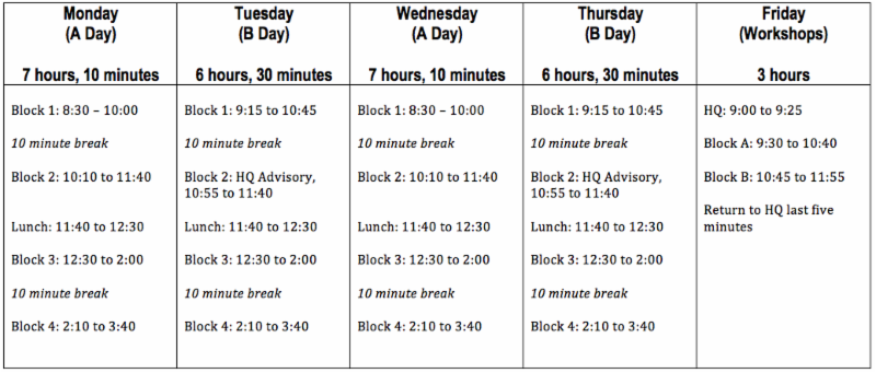 6:30 - 6:45 - Directors' Welcome 6:45 - 6:52 - Attend your child's Period 1A course 6:55 - 7:02 - Attend your child's Period 2A course 7:05 - 7:12 - Attend your child's Period 3A course 7:15 - 7:22 - Attend your child's Period 4A course 7:25 - 7:32 - Attend your child's Period 1B course 7:35 - 7:42 - Attend your child's Period 2B course (HQ Advisory) 7:45 - 7:52 - Attend your child's Period 3B course 7:55 - 8:02 - Attend your child's Period 4B course 8:05 - Thank you and goodbye! (iLEAD North Hollywood closes for the evening)