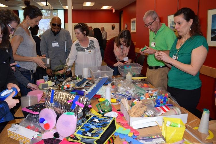 initiative might look like. Using pipe cleaners, paper clips, construction paper and found objects to illustrate design solutions for teaching environmental education, the goal was to think about how SMCOE can enhance and support environmental education beyond the successful residential Outdoor Education program that the County Office operates, to connect environmental education with key principles of sustainability, technology, innovative energy and imagination in Silicon Valley.