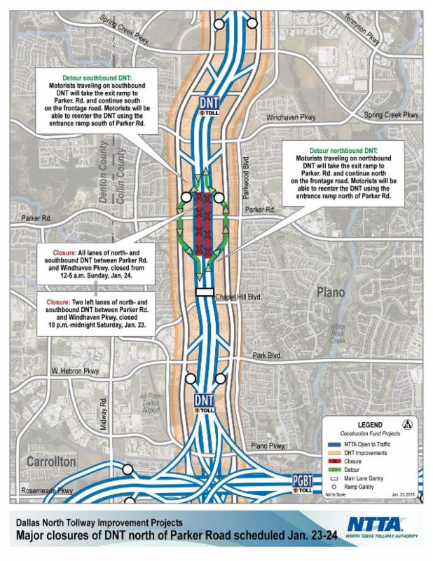 Major Dallas North Tollway Closures Scheduled at Parker Road Jan. 23-24
