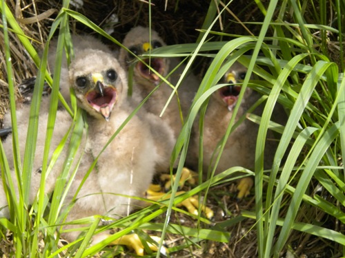 | Heather as a chick in the nest with her siblings (Photo: Barry O'Donoghue) |