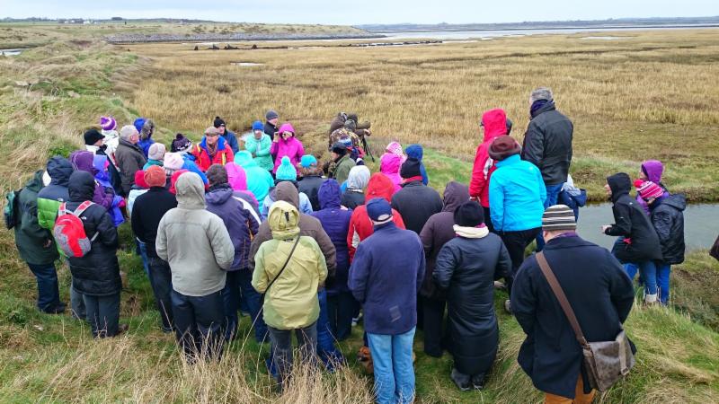 Over 60 wildlife enthusiasts braved the biting cold winter winds to take a stroll in the salt marshes and sand dunes at Tramore, County Waterford.
