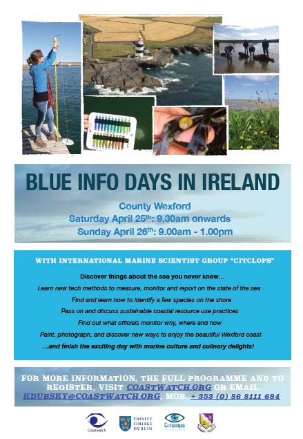 The first 'Blue Info Days' weekend in Ireland will take place on 25th and 26th April 2015 in county Wexford and consist of a mix of short talks, demonstrations and hands on trials, lots of fieldwork and fun water events.