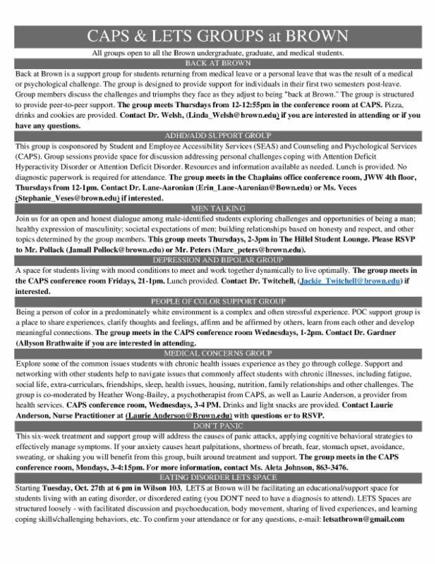 OCRL Bereavement Group Established nearly 30 years ago, this informal gathering is for students who have suffered the loss of a loved one and are struggling with grief. Neither clinical nor religious, the group offers time with others who truly understand. Bereavement Group will meet each Monday in J. Walter Wilson, Room 411. Attend regularly or occasionally; tea and goodies will be served. Call the Office of the Chaplains at 401-863-2344 for more information.