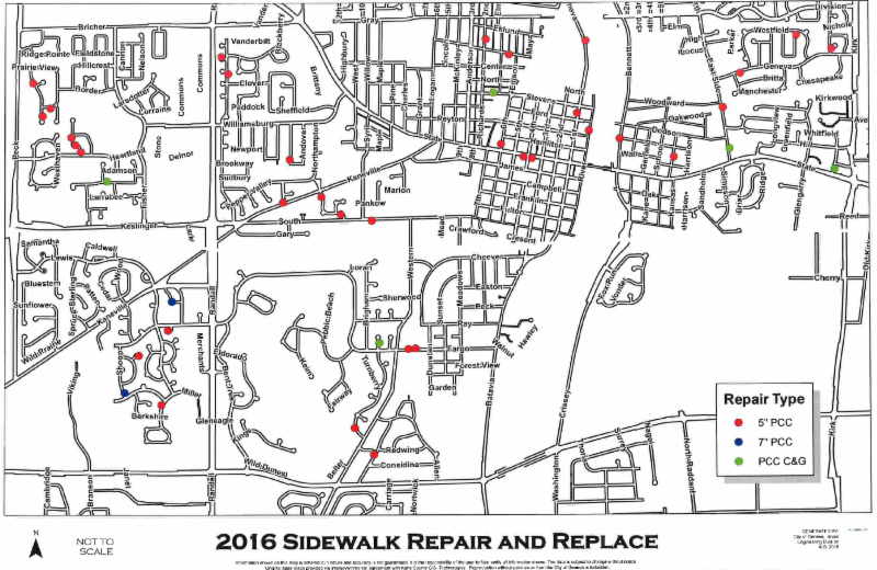 Sidewalk and curb repairs are scheduled to take place throughout Geneva the week of July 11, weather permitting.