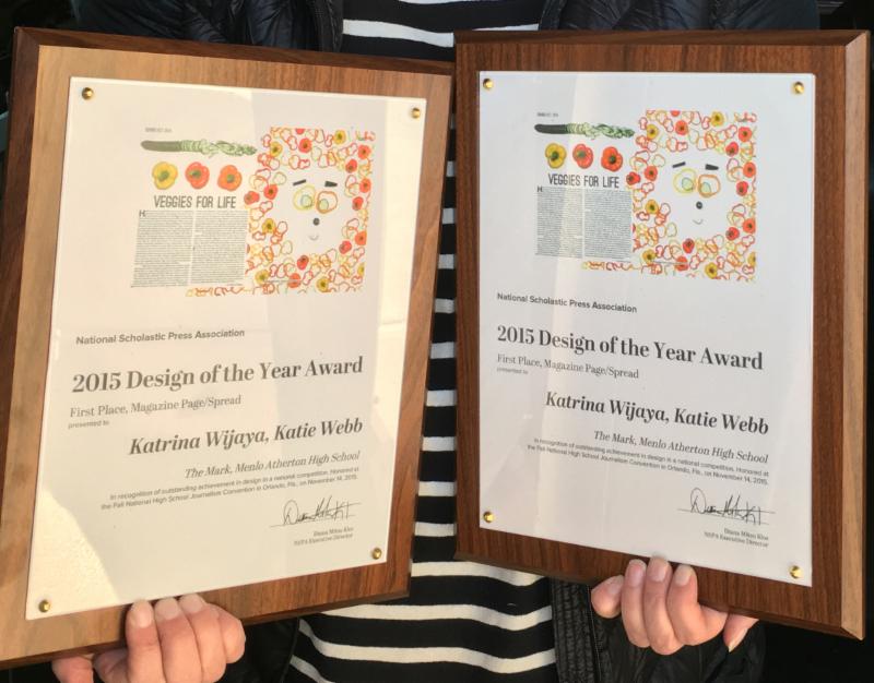 I am happy to announce that Katrina Wijaya and Katie Webb won FIRST PLACE in the Design of the Year-Individual Awards category, in the National Scholastic Press Association awards this year. As you may remember, we announced that they were finalists earlier this year. Katrina Wijaya and Katie Webb have both graduated but they have left a great legacy.