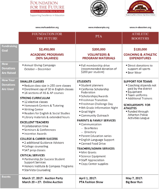 Providing all M-A students with diverse academic, social, extracurricular and athletic opportunities is a team effort. The Foundation, PTA and Boosters all work together to offer our students an array of choices. Your generosity to these groups will help benefit all M-A students.