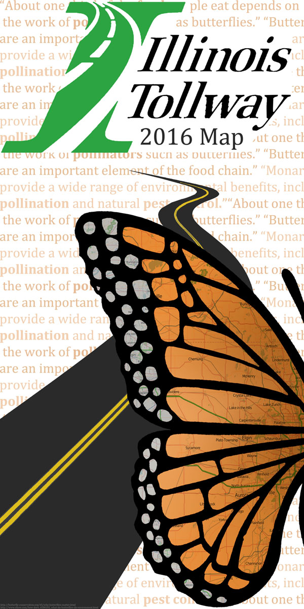 Students from across Illinois were asked to create a design for next year's map that centered around the theme "Save the Monarchs." In addition to being a captivating design, Tessa's artwork educates the viewer with facts about the dwindling monarch population, their role as pollinators and monarchs' habitats. She did the project as an assignment in her Graphic Design 2 class. In total, over 75 students submitted designs statewide. That pool was narrowed down to the top ten by the Illinois Tollway. The top ten designs were then put to public vote on the Tollway's website where the top four emerged as finalists. These were again judged and Tessa's emerged as the winner. Tessa won a $400 gift certificate to Blick Art, $200 in gift certificates to Oasis restaurants across Illinois and her design will be featured on the cover of the 2016 Illinois map, available at all Illinois Tollway Oases.