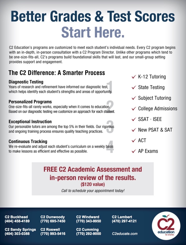 Unlike other programs, which tend to be one-size-fits-all, C2 Education's tutoring programs are personalized to meet the unique needs of each student. And at C2, our programs don't just end just with higher SAT and ACT scores. Our experienced tutors and program directors can offer students academic support in a wide variety of subject areas, assist in the college admissions process, and help you children master standardized tests.