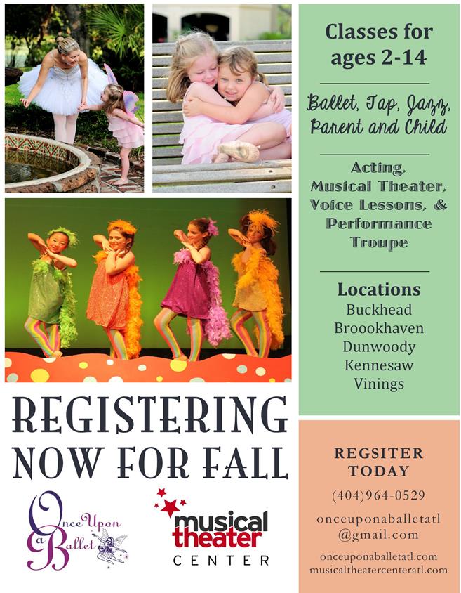 Email onceuponaballetatl@gmail.com or call 404-964-0529 for more information.www.musicaltheatercenteratl.com www.onceuponaballetatl.com