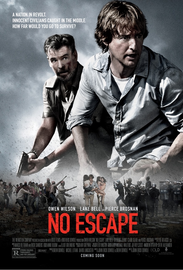 An intense international thriller, NO ESCAPE centers on an American businessman (Owen Wilson) as he and his family settle into their new home in Southeast Asia. Suddenly finding themselves in the middle of a violent political uprising, they must frantically look for a safe escape as rebels mercilessly attack the city. Directed by John Erick Dowdle and written together with his brother Drew, NO ESCAPE stars Owen Wilson, Pierce Brosnan and Lake Bell.