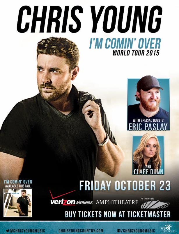 ASO Presents is proud to welcome CHRIS YOUNG with Eric Paslay and Clare Dunn to Verizon Wireless Amphitheatre at Encore Park on Friday, October 23, 2015 at 7:30pm.