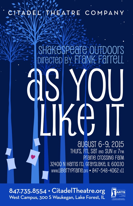 THIS WEEK is the Citadel Theatre's production of Shakespeare's As You Like It on the Prairie Crossing Farm. Performances begin at 7 p.m. Aug. 6 - 9 (Thurs. - Sun.). Bring a picnic and/or bottle of wine to enjoy!
