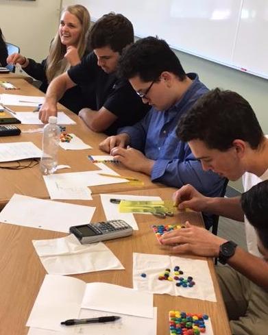 To prepare for their final exam, students in Essentials of Calculus have been taking turns instructing one another on key class topics. Research has shown that teaching prompts students to work harder to understand the material, recall it more accurately and apply it more effectively. Plus, according to math teacher Jenny Bjornstad, it maximizes engagement by giving students the opportunity to integrate the material into something they find fun or exciting. One group taught a lesson that involved determining the dimensions of a candy garden and maximizing the amount of M&M flowers given a defined amount of fencing. Another group instructed classmates to estimate the area of Donald Trump's hair by using Reimann sums and integrals. Calculus lessons involving humor and sugar are sure to prove memorable during test time!