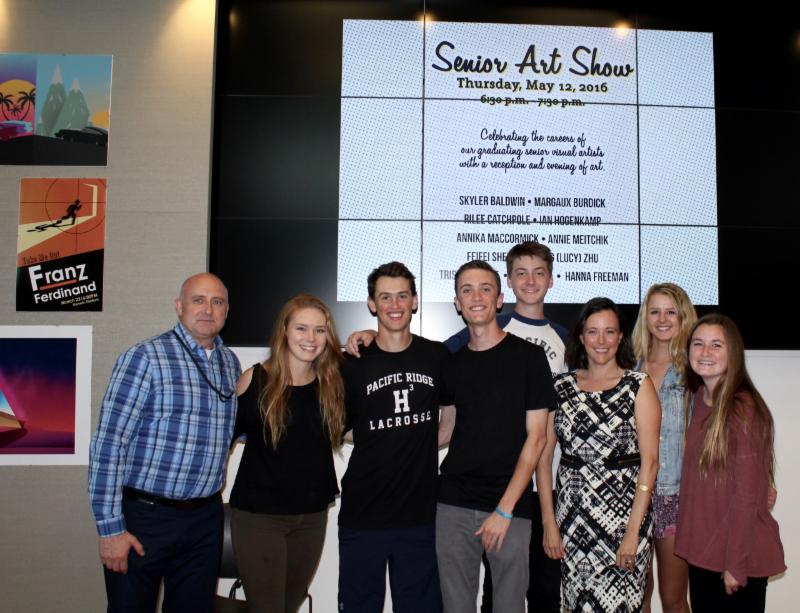 The portfolios of Pacific Ridge's graduating visual artists were celebrated on Thursday, May 12th, with a reception and exhibit in the Arts & Technology Center. Families and friends viewed the artwork and discussed its inspiration and creation with each of the artists. "A good time was had by all at this year's senior art show," said Art teacher Ray Oakes. "Students, parents, friends, and faculty were treated to an exhibition of studio art and graphic design by our talented seniors. The reception was also full of good food and conversation regarding the culmination of a successful year of visual art. We were able to send our seniors off with the knowledge that they will always have an arts family at Pacific Ridge, and we wish them well."