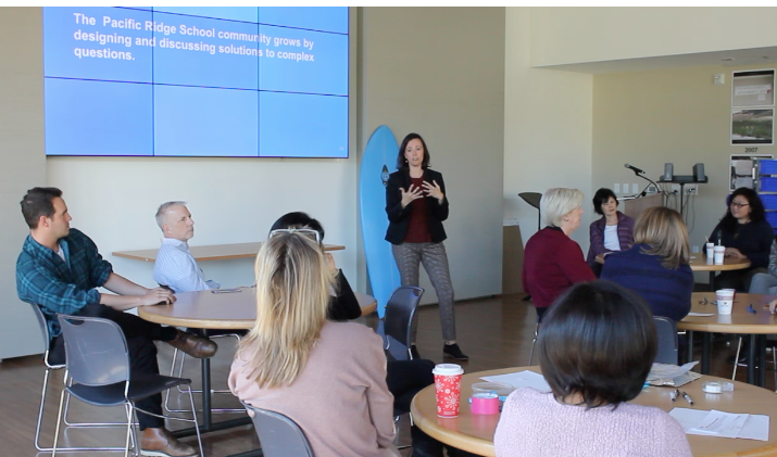 On December 8, parents had the opportunity to learn about ways Pacific Ridge incorporates hands-on learning into its curriculum. Mr. Dziekonski opened the session by presenting research about the importance of active learning to stimulate various parts of the brain and build essential skills. Ms. Schmidt then introduced a hands-on activity for participants in which they had 20 minutes to develop a novel product prototype to help people stay hydrated. Attendees used various supplied materials to create their prototypes, then shared them with the group. Parents were energized by the activity, with more than one commenting, "This makes me want to go back to school!"