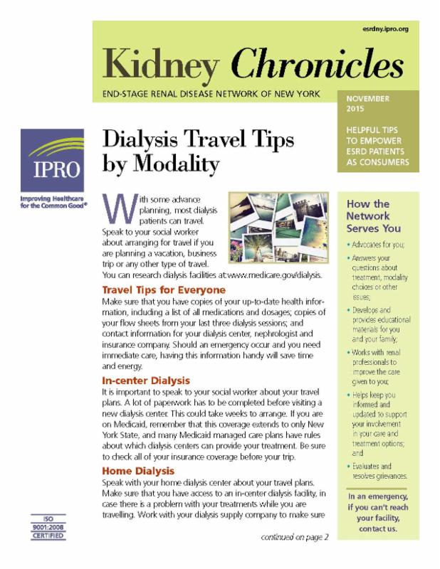 This material was prepared by IPRO End-StageRenal Disease Network of New York, the ESRD Organization for New York State, under contract with the Centers for Medicare & Medicaid Services (CMS), an agency of the U.S. Department of Health and Human Services. The contents presented do not necessarily reflect CMS policy. CMS Contract Number: HHSM-500-2013-NW002C |