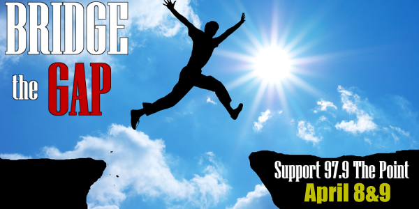 97.9 The Point has been on the air for more than 10 years, bringing positive entertainment, and helping people go deeper in their faith through great music. This has been possible because people have donated to 97.9 The Point. This month, you can donate to the Point and give us a boost of support through the summer months! Bridge the Gap will be on the air April 8&9. Thanks for donating and helping us be a positive influence for young people in the Greater Black Hills!