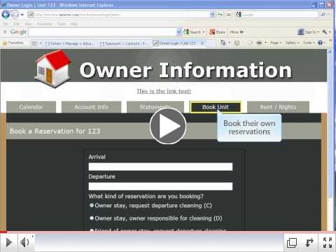 The Owners Login module allows owners to log in using a secure password and view their statements, book their own reservations and even check year to date totals on gross rent and nights booked.