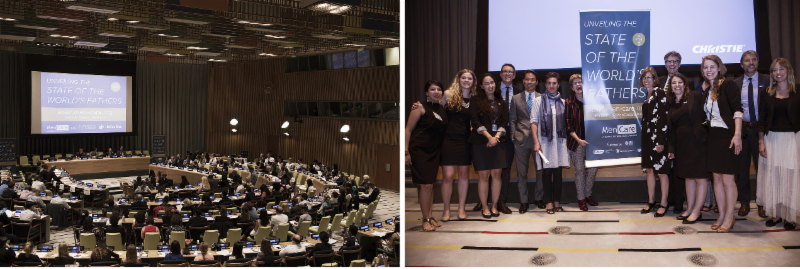 | The State of the World's Fathers 2015 Report was launched on 16 June 2015 at several events across the globe, including in Stockholm, London, Washington DC, Geneva, and Nairobi, as well as at an event at the UN Headquarters in New York. The New York event brought together several speakers and panelists, including Chelsea Clinton, Vice Chair of the Clinton Foundation, who delivered the opening remarks, and Kate Gilmore, Deputy Executive Director of UNFPA, who delivered the keynote address (filling in for Babatunde Osotimehin, Executive Director of UNFPA, who was unable to attend).   The event focused on the importance of men's caregiving, and its benefits for women, children and men themselves. Speakers stressed that full gender equality would not be realized without men's uptake of 50 percent of the childcare and domestic work. "Encouraging men to be good fathers is vital," said Kate Gilmore, who also called the event, "historic." Speakers, including Chelsea Clinton, also discussed the need for paid, non-transferable, paternity leave policies worldwide.