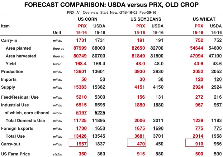 Very few changes were made to the USDA-WAOB WASDE estimates released today. USDA ERS will release 2016/17 supply/demand estimates at the February 25-26 Outlook Conference. These estimates will be included in next month's reports.