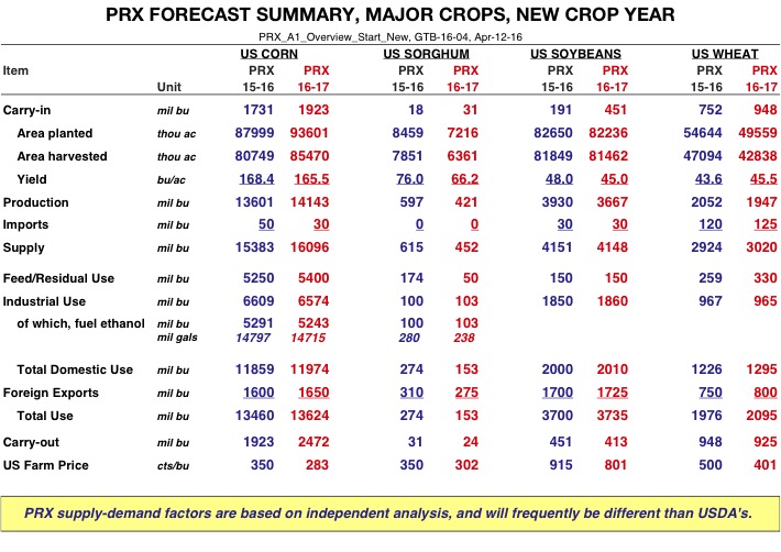USDA-WAOB made a few changes to the major crop supply/demand estimates for 2015/16. This report also reflects data from the March Stocks and Prospective Planting reports. All PRX reports will be updated and available on the website this week.
