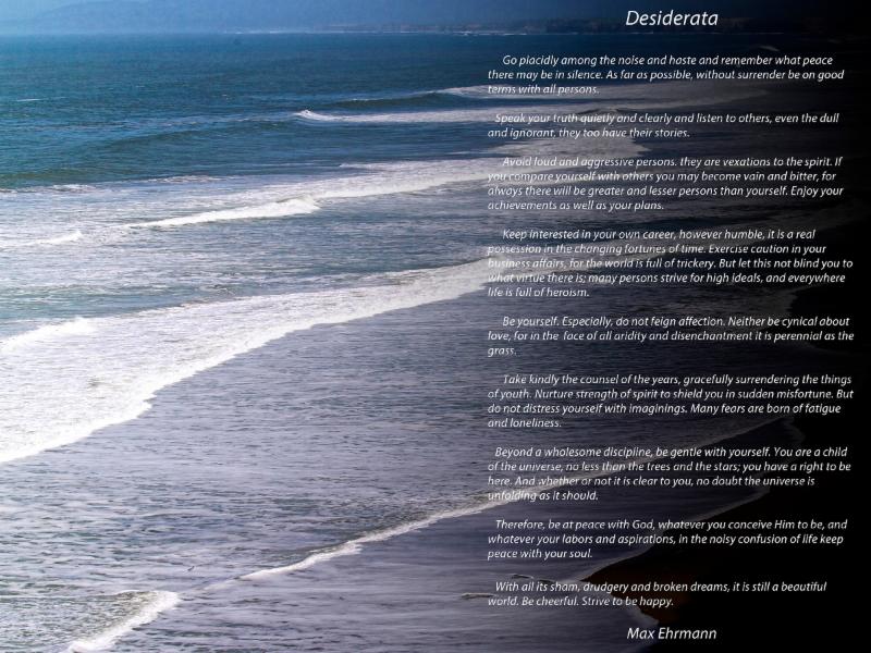 So there you have it. I'm attaching a copy of Desiderata, tonight and it is of a size and quality you will be able to get a high quality print from. Put it together this afternoon and hope you enjoy it.
