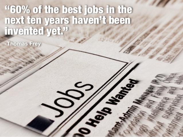 5. If you aren't an effective entrepreneur, you better have a defined (and needed) trade, or the ability (and degrees) that make you useful.- As technology, area demographics ( due to increased mobility) and trend change more rapidly, hierarchical businesses and organizations will be replaced by those that can quickly pivot to take advantage of opportunities or mitigate risks. If half of the economy is made up of entrepreneurs, what happens to the other half? Robotic repair specialists, technical repair professionals,  designers, engineers, scientists and others needed to physically build, repair, maintain and grow the emerging infrastructure needed for the new economy will be in high demand. These jobs will require a level of sophistication and continual education to maintain relevance, but will have much higher pay scales than the jobs they are replacing.