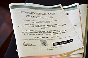 On February 12-13, Wartburg Theological Seminary, the Archdiocese of Dubuque, and Loras College co-sponsored a Celebration of the 15th Anniversary of the signing of the Joint Declaration on the Doctrine of Justification by the Lutheran World Federation and the Roman Catholic Church, October 31,1999. This Celebration was part of the Observance of the 500th anniversary of the Reformation (1517) and the Observance of the closing of the Second Vatican Council (1962-65).    Dr. Samuel Giere, Associate Professor of Homiletics & Biblical Interpretation and Director pro tem for the Center for Global Theologies at Wartburg Seminary, said of this event, "The historic observations of the 500th anniversary of the Protestant Reformation and the 50th anniversary of the end of the Second Vatican Council together with the 15th anniversary of the signing of the Joint Declaration on the Doctrine of Justification provide Lutheran and Roman Catholic Christians a wonderful opportunity for conversation, fellowship, and prayer in celebration of our common witness to the Triune God. We are deeply grateful for the partnerships that have opened the way for holding this event, in particular the partnership of the Archdiocese of Dubuque, Loras College, and Humanities Iowa."