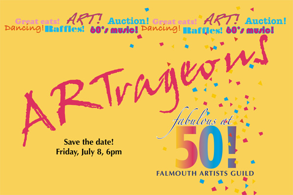 Make your ARTrageous Summer Gala reservations TODAY! You can do so on our website www.falmouthart.org, by phone, in person, or through the mail. Come help us celebrate our 50th Anniversary with wonderful food and libations, live and silent auctions, the Summer Juried Exhibit, and Rowland Scherman's photography exhibit, Then and Now.