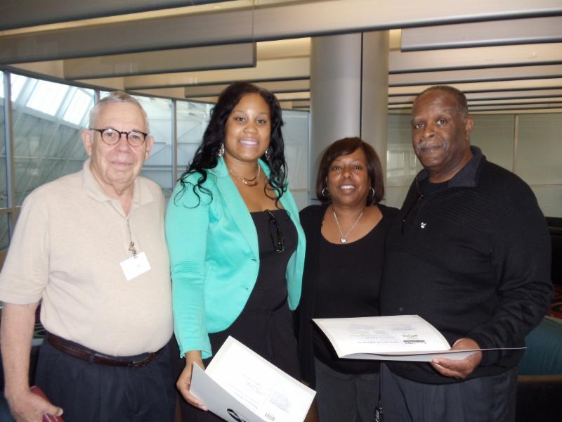 | Focus: HOPE Job Seekers Bootcamp | |  Pictured in the center is Marlena Alston, who graduated Thursday, September 24th, from the Job Seekers' Boot Camp program of Focus: HOPE. Marlena is an accomplished, personable and highly motivated young woman who would benefit from assistance in identifying new opportunities and in networking. Her career focus is Communications and Public Relations. Marlena has excellent work history in achieving cost savings for corporate clients from energy, wireless and telecom vendors and in serving as an "escalation supervisor" and senior customer service representative for one of the major wireless companies. An "escalation supervisor" is one who handles insistent (and often indigent) customers. After having earned an associate certificate (with honors) in Broadcast Technology, she is now pursuing a four year, BA degree. Parishioners interested in helping her may obtain a copy of her resume by contacting her at shay123444@gmail.com. |