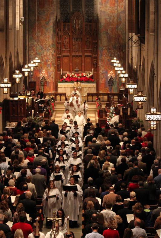 7:00 PM & 10:00 PM ~ A traditional Holy Eucharist service with the full choir and brass accompaniments. Nursery care is offered at the 7:00 PM service.