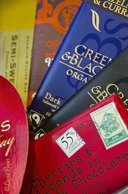 There has been a lot of news in recent years about the benefits of eating the right kinds of chocolate. Generally speaking, chocolates that contain the maximum amount of healthful components and the minimum amount of unhealthful components, are the best for you. So what is good in chocolate? Chocolate contains flavonols - a type of flavonoid, i.e. antioxidant phytochemicals - also found in tea, grapefruit, grapes, and wine. Flavonols are currently recognized as being good for cardiovascular and brain health and are thought to have a wealth of potential other health benefits. Chocolate, however, can contain a number of unhealthy additives such as transfats and sugars. Natural unsweetened cocoa powder - not Dutch processed - is considered the healthiest form of chocolate because it is highest in flavonoids and lowest in sugars and saturated fat. Unsweetened solid chocolate is next best, followed by bittersweet chocolate and semisweet chocolate. Apart from the potential happiness factor for its fans, milk chocolate probably doesn't have a whole lot in the way of health benefits. The FDA has not established guidelines for what distinguishes bittersweet from semisweet chocolate, leaving it up to individual producers to decide how to market their chocolate. That said, generally speaking, in the US, the percentage of cocoa in bittersweet chocolate is in the 70's-80's range and semisweet in the 50's - 60's range. At least 72% cocoa is generally what is recommended for health benefits, with higher being even better. But people used to eating sweet milk chocolate might not enjoy chomping on a chocolate bar with 85% cocoa. The solution: work one's way up in cocoa percentage over time, until one enjoys the darker chocolate. Here's to your health - and to your happiness!